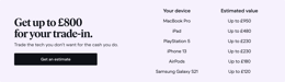 Currently, you can trade in smartphones, tablets, MacBooks, headphones, earphones, speakers, and gaming consoles. This includes devices that have already been refurbished or repaired.