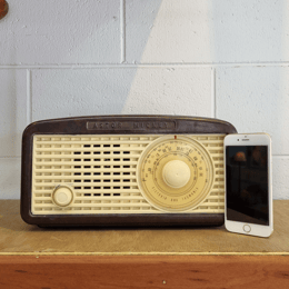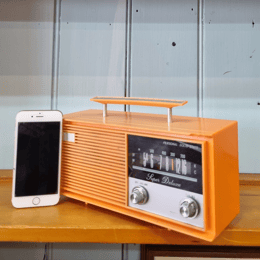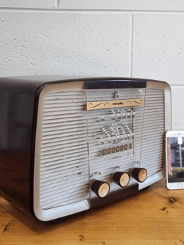 An up-cycled Astor Mickey HQ early 1950s speaker that now works with bluetooth.