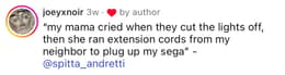 The company’s 1989 console was Curren$y’s gateway to Ecco the Dolphin, a game he played in his childhood bedroom, fully immersed in its gloomy underwater soundscapes. Unsurprisingly, our chat with this rap legend went viral, prompting hundreds of you to share your own stories about the magic of the Sega Genesis (called the Sega Megadrive in Europe) and the formative role it played in your lives. Here’s a roundup of some of the best responses from our Instagram post.